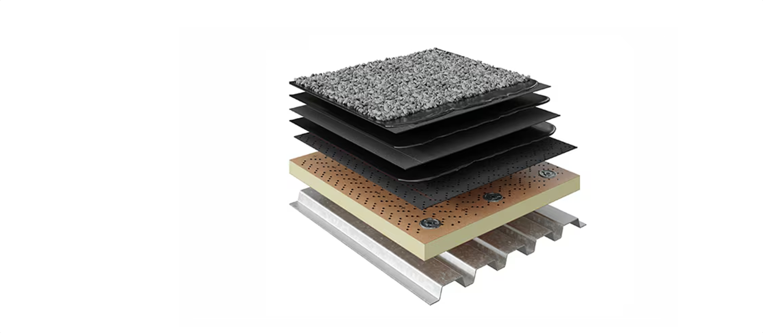 Built-up roofing systems consist of multiple layers of asphalt and reinforcing fabrics to create a durable, long-lasting roof assembly. BUR systems are well-suited for high-traffic commercial and institutional roofs where durability and redundancy are critical.